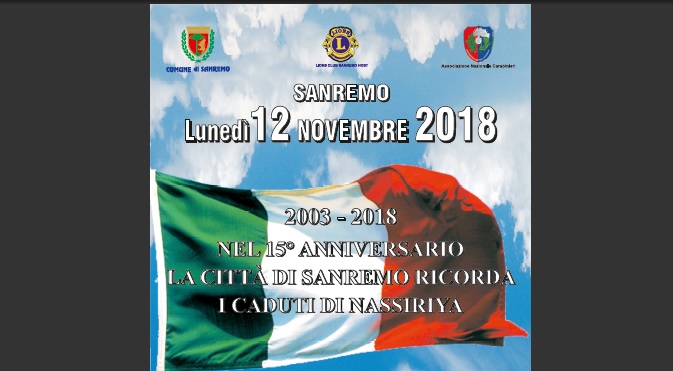 GLI EVENTI A SANREMO PER I CADUTI DI NASSIRIA Oggi, lunedì 12 novembre, la città di Sanremo ricorda