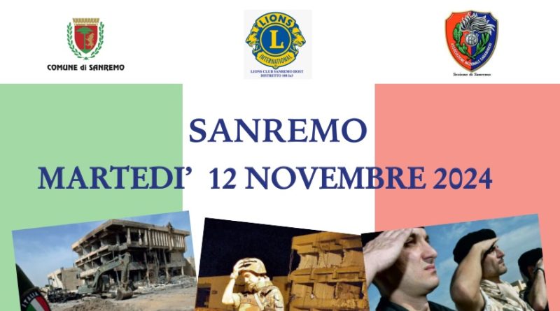 Sanremo ricorda i Caduti di Nassiriya Domani (mercoledì 12 novembre) l’Amministrazione comunale, in collaborazione con l’Associazione Nazionale Carabinieri- sezione Sanremo,