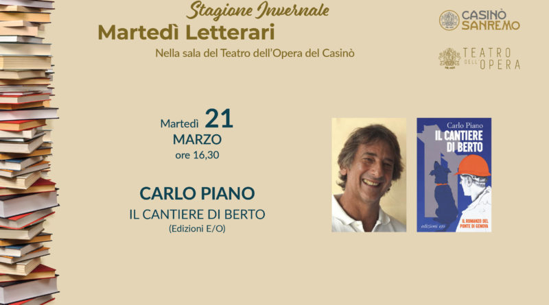 Leggi il seguitoCARLO PIANO AL TEATRO DELL’OPERA DEL CASINO’ DI SANREMO IL 21 MARZO 2023 ALLE ORE 16,30 I Martedì Letterari presentano