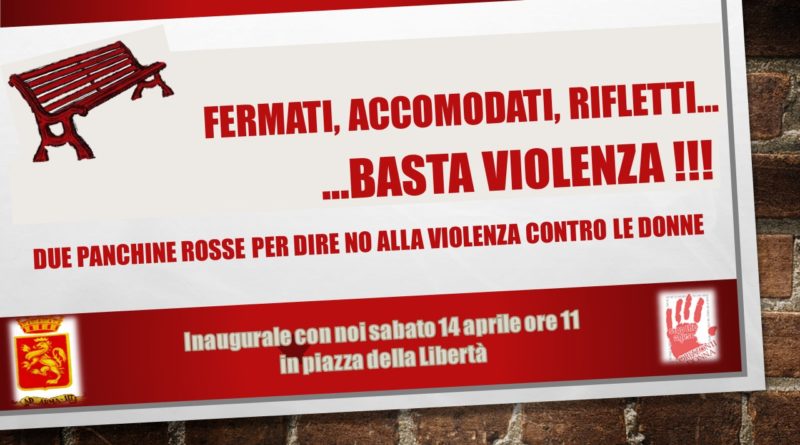 PANCHINE ROSSE CONTRO LA VIOLENZA SULLE DONNE: SABATO 14 APRILE L’EVENTO A VENTIMIGLIA L’Amministrazione Comunale invita la cittadinanza sabato 14