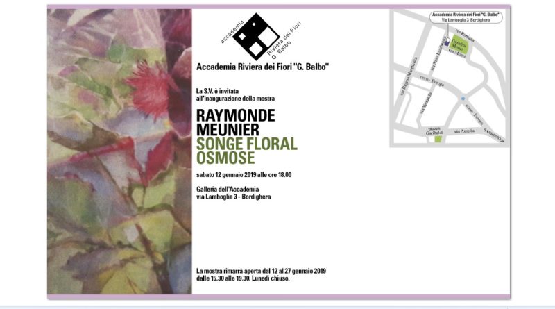 “SONGE FLORAL – OSMOSE” MOSTRA OPERE ALL’ACCADEMIA BALBO Sabato 12 gennaio 2019, alle ore 18,00 nella sala esposizioni dell’Accademia Balbo