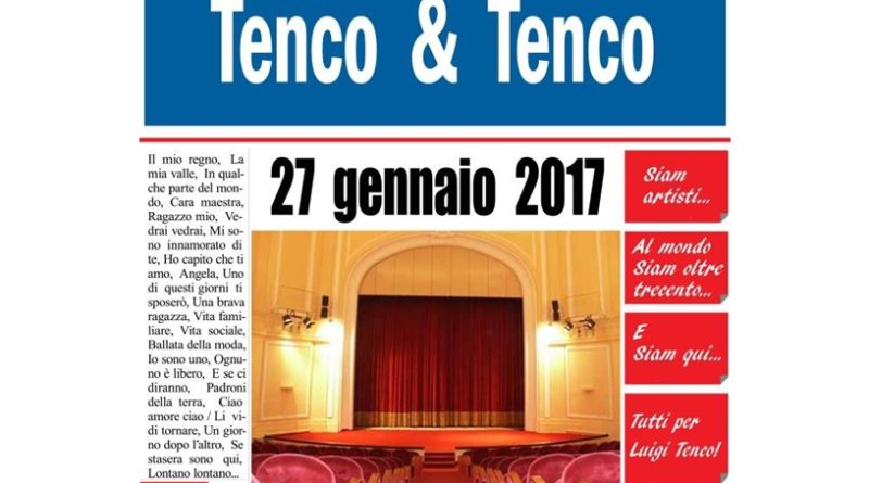 Leggi il seguitoTENCO & TENCO Concerto-Evento Teatro dell’Opera del Casinò di San Remo Il 27 gennaio 1967, cinquant’anni fa, veniva trovato